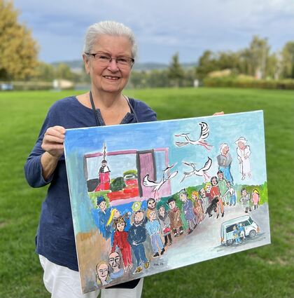 Ilse Venmans, Schriesheim, Lieblingsmenschen, Tusche auf Leinwand, koloriert, E-Mail: ilsevenmans@kabelbw.de