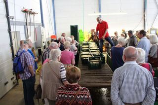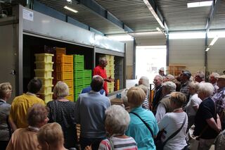 In der Lagerhalle zeigt Karl-Heinz Schmidt den Lesern, was mit den Spargeln nach der Ernte passiert. Dort werden sie sortiert, gewaschen...