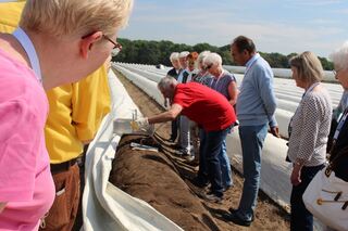 Auf dem Acker zeigt Schmidt dann, wie das Spargelstechen funktioniert.