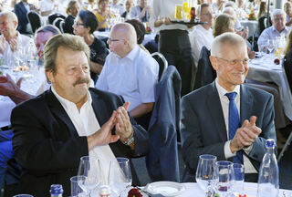 Georg Seiler im Gespräch mit Walter Rettl, dem ehemaligen Geschäftsführer der Stadthalle.