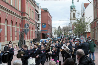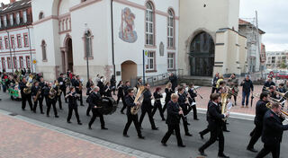 Blick in die Rathausstraße, vorne: Orchesterverein Stadtkapelle Hockenheim