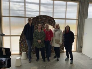 Marion-Marker Schrotz (v. l.) mit Kultusministerin Theresa Schopper, Anja-Kaiser und Birgit-Rechlin bei der Ausstellung.