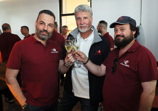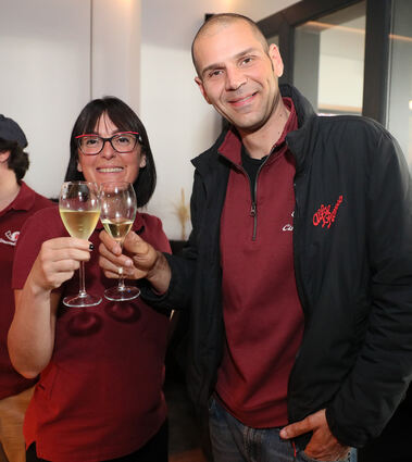 Prösterchen! Auf Einladung von Richard Damian, Leiter des Hotels am Hockenheimring, gibt es für die Gäste in der Bar Prickelndes.