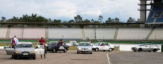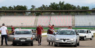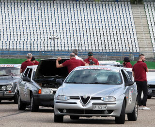 Es ist soweit: Die italienischen Gäste dürfen mit ihren Fahrzeugen auf dem legendären Hockenheimring fahren. Jochen Vetter hat das arrangiert.