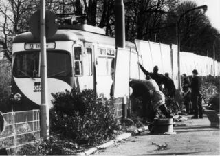 Die OEG rauscht hinter einer Schutzwand vorbei, die das Absturzareal vor neugierigen Blicken abschirmt.