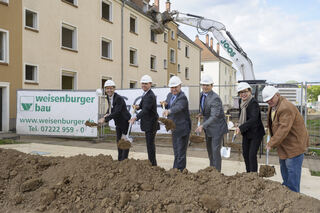 Mit einem Ersten Spatenstich feiert die GGH den Baubeginn Höllenstein im April 2014.