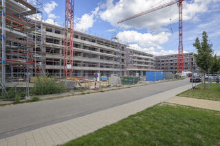 Im vierten Bauabschnitt – 85 Wohneinheiten, eine Arztpraxis und Gemeinschaftsräume – ist der Rohbau fertig.