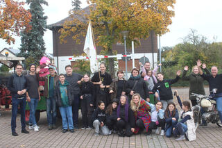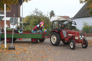 Die Einfahrt der Kerweschlumpel auf den Messplatz, gezogen von Traktorfahrer Klaus Michl.