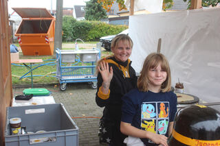 Beste Laune am Crêpestand der Jugendfeuerwehr.
