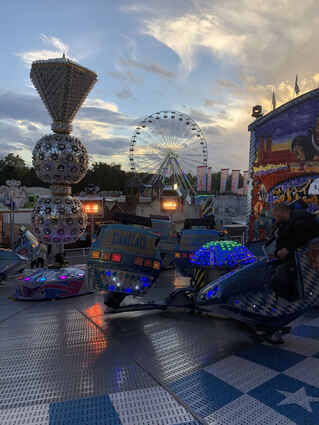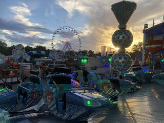 Doch die Fahrgeschäfte und die untergehende Sonne haben gemeinsam eine ganz eigene Faszination.