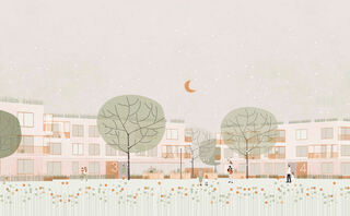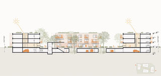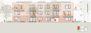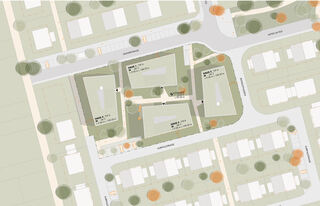 Die dreistöckigen Gebäude verfügen über Balkone und begrünte Dächer.