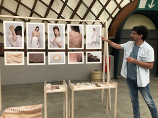 Marc Reisner präsentiert das Projekt von Cora Schmelzer, die aus Pilzen wachsende Kleidung näht.