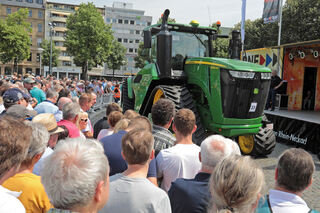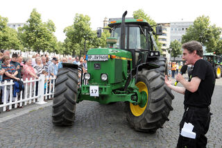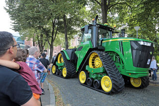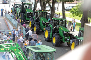 Zahlreiche grüne Traktoren von John Deere fuhren um den Wasserturm.