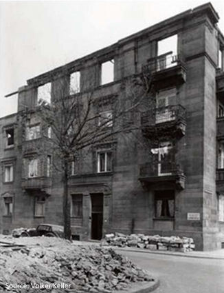 Das Haus in der Großen Merzelstraße im Jahr 1949. Es steht den Stadtplanern im Weg, in den 60er Jahren verschwindet die ganze Straße vom Stadtplan.