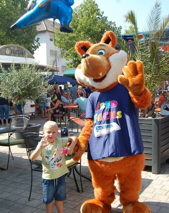 Verkaufsoffener Sonntag: MM-Maskottchen Fred Fuchs mit Team.