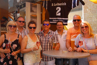 Lustige Kerwegesellschaft, von links: Claudia und Klaus Geikler, Birgit Schneider, Ralph Streib, Sascha Boll, Stefan und Tammy Bade.