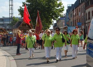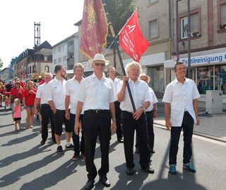Der Männergesangsverein 1878 Sandhofen beim Kerweumzug. Die Fahne trägt der Vereinsvorsitzende Heinz Guckert.