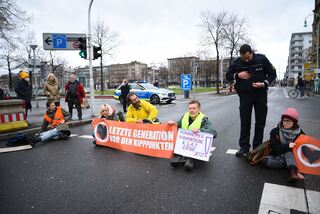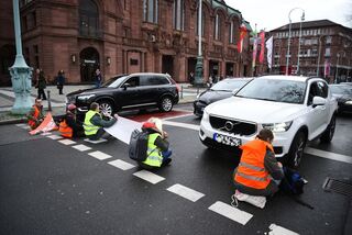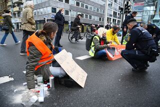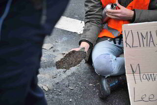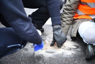 Ein Aktivist hatte sich mit einer spezielle Klebemischung aus Sand und Klebstoff auf der Straße festgeklebt.