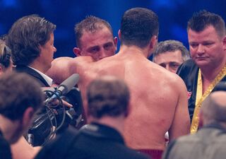 Der ukrainische Boxweltmeister der IBF, WBO, WBA und IBO im Schwergewicht, Wladimir Klitschko (r), umarmt den deutsch-italienischen Herausforderer Francesco Pianeta am 04.05.2013 in der SAP-Arena in Mannheim (Baden-Württemberg) nach dem Kampf. Foto: Uwe Anspach/dpa +++(c) dpa - Bildfunk+++