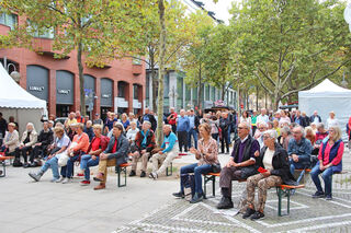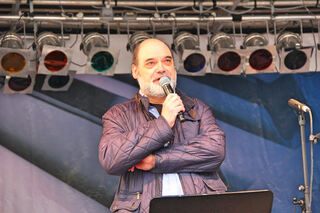 Georg Spindler, Kulturredakteur beim Mannheimer Morgen, begrüßt die Gäste auf den Mannheimer Kapuzinerplanken.