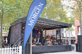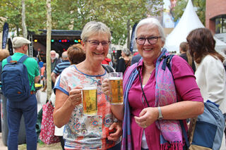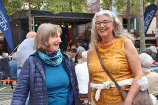 Gut gelaunte Besucherinnen beim "Jazz im Quadrat" auf den Mannheimer Kapuzinerplanken.