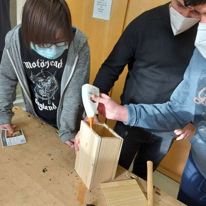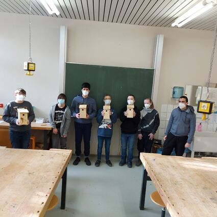 Mädchen und Jungen der Uhland Werkrealschule haben im Technik-Unterricht Nistkästen gebastelt.