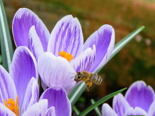 Zaghafte Frühlingsboten: Krokus mit Biene