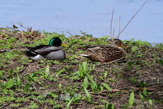 Entenpaar genießt die Frühlingssonne