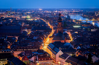 Heidelberg zur blauen Stunde, fotografiert vom Schloß