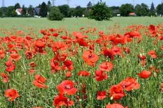 Auf einem brachliegenden Feld zwischen Ladenburg und Neubotzheim hat sich Klatschmohn breit gemacht