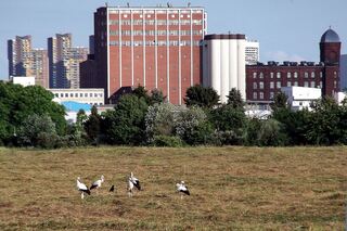 Störche auf Futtersuche