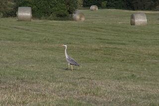 Graureiher schreitet über die Wiese