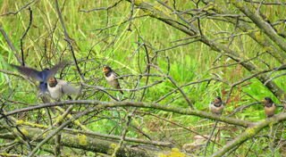 Sie sind schon eingezogen: Bettelnde Rauchschwalbenkinder bei der Fischkinderstube in Edingen-Neckarhausen