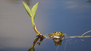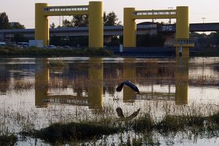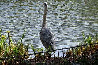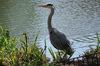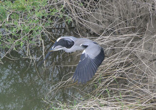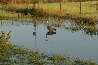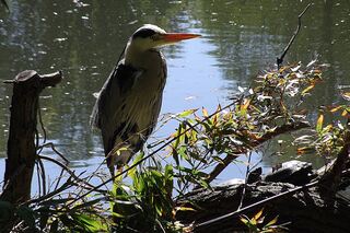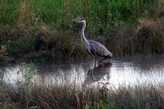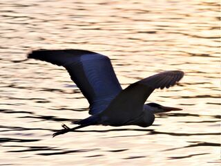In der Abenddämmerung macht sich dieser Graureiher auf die Suche nach Fisch.