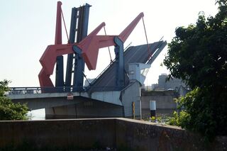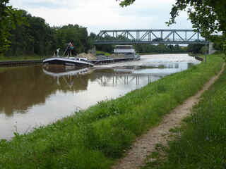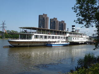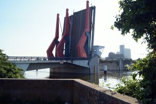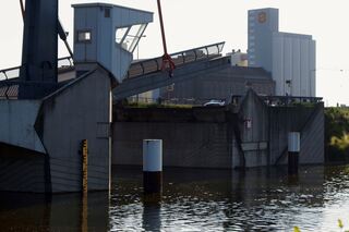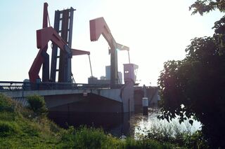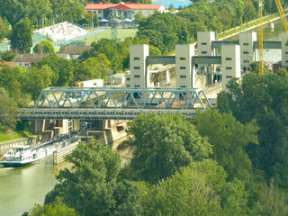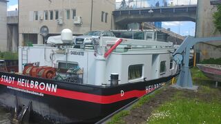 Ein Schiff fährt in die Feudenheimer Schläuse