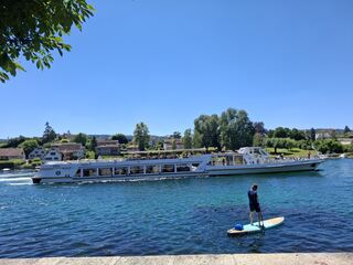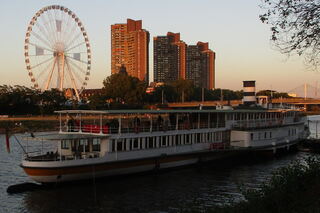 Raddampfer am Abend