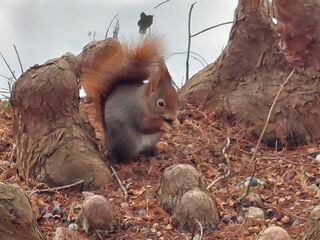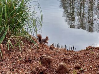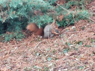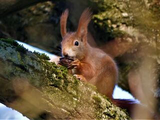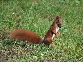 Dieses Eichhörnchen sorgt mit einer Walnuss für seinen Wintervorrat