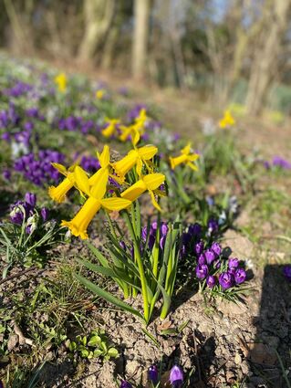 Im Hermannshof in Weinheim gibt es zur Zeit eine wahre Fülle an Frühblühern, hier Alpenveichen