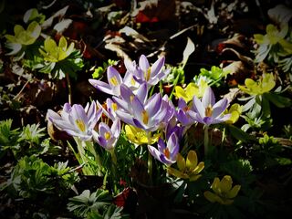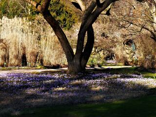 Im Hermannshof blühen zur Zeit massenhaft Krokusse in der warmen Vorfrühlingssonne