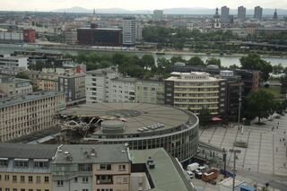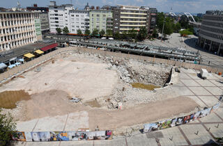 Ludwigshafen. 10.08.15 Berliner Platz. Abrissarbeiten der sog. Tortenschachtel. Haltestellen der RNV werden verlegt. Bild: Markus Proßwitz 10AUG15 / masterpress