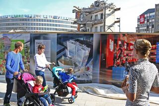 Ludwigshafen. 11.09.15 Berliner Platz, Innenstadt. Abriss "Tortenschachtel". Vorstellung des Bauzauns. - Günther Tetzner (Timon Gruppe) enthüllt. Bild: Markus Proßwitz 11SEP15 / masterpress