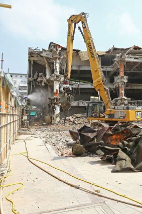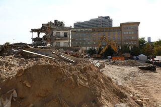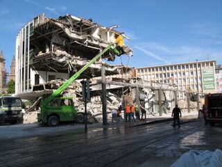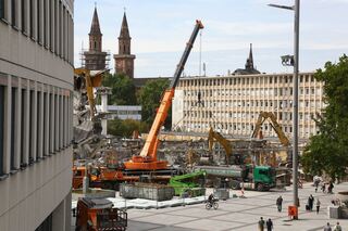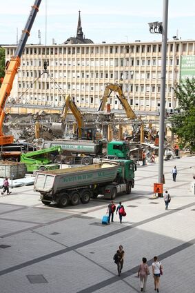 Auf der Westseite der "Tortentschachtel" fressen sich die Abrissbagger immer Tiefer in die Bausubstanz ...