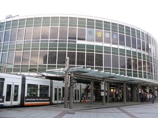 Tortenschachtel am Berliner Platz Aufnahme zum Thema Handelsimmobilien, RNV, Haltestelle für Straßenbahnen Bildtext: Hier wird investiert: Das ehemalige Rala-Haus (anderes Bild), das Bismarck-Zentrum (anderes Bild), das Schuhhaus Keller (anderes Bild) und die "Tortenschachtel" (dieses Bild). BILDER: BUR Investitionen in Handelsimmobilien