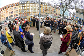 Alle Beteiligten versammeln sich vor den Bürgerdiensten.