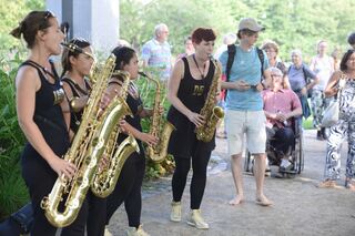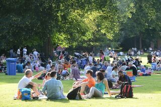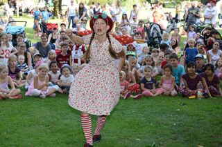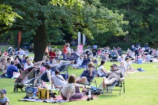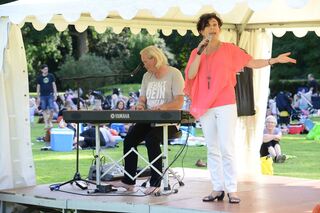 ...vor dem Pflanzenschauhaus mitten im Luisenpark das Sommerfest Picknick im Park statt.