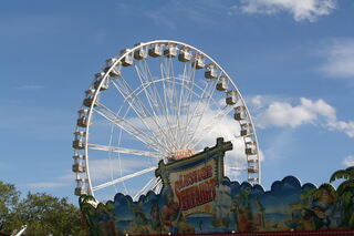Das Riesenrad ist eines der 140 Attraktionen der Messe.