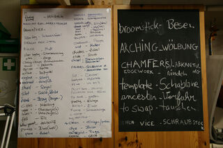 Tafel mit Fachbegriffen auf Deutsch und Englisch, mit denen sich Uphoff und Ouvry am Anfang verständigt haben