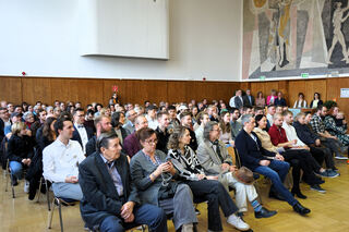 In der Aula der Ehrhart-Schott-Schule wurde die Meisterklasse 2024 der Schreiner verabschiedet. Das ließen sich viele Angehörige und Freunde nicht entgehen. Bild: Widdrat