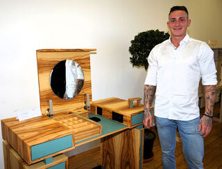 Lukas Seltenreich aus Meckesheim hat die Idee für einen Schminktisch aus Olive-Furnier und Fenix-Oberflächen gehabt. Bild: Widdrat