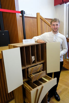 Jannik Uhl aus Sandhausen hat diesen Büroschrank aus Nussbaum gefertigt. Bild: Widdrat